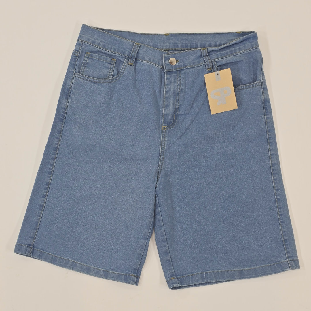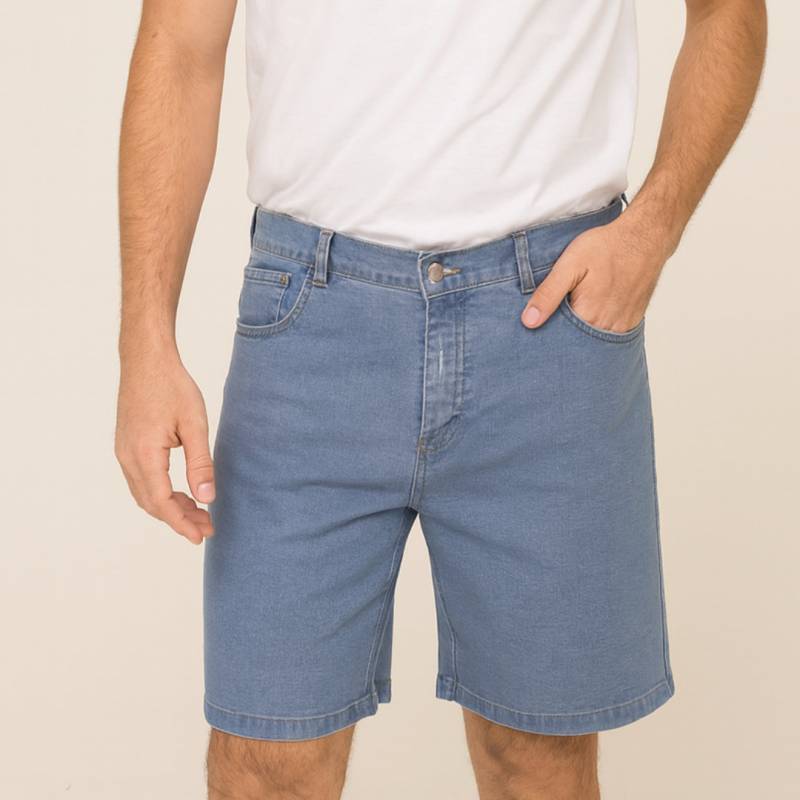 BERMUDA DE JEAN COLOR AZUL. CALCE REGULAR, TEJIDO RESISTENTE CON ELASTICIDAD JUSTA PARA COMODIDAD. BOLSILLOS DELANTEROS Y TRASEROS, COSTURAS REFORZADAS. IDEAL PARA USO URBANO Y DIARIO. TALLES DEL 36 AL 54. EL MODELO USA TALLE 40, MIDE 1,80 Y PESA 75K