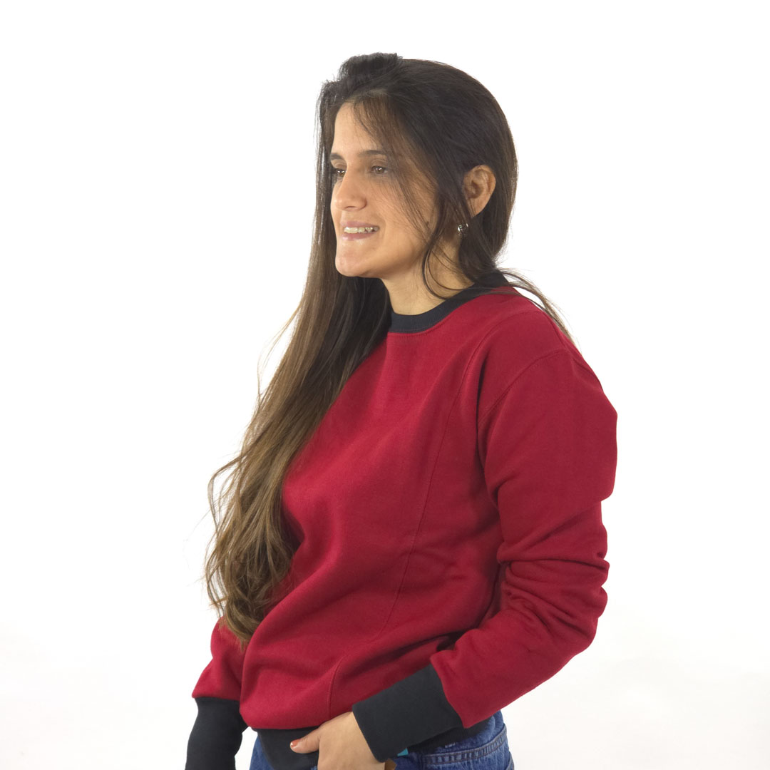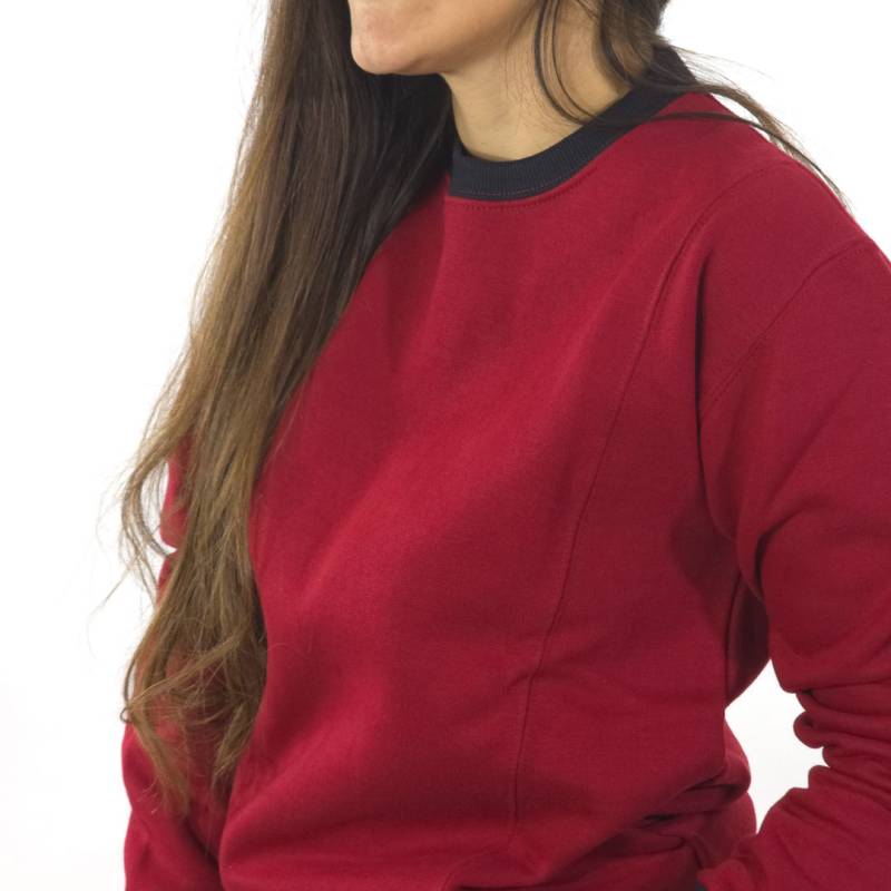 BUZO DE FRISA PREMIUM CON ESCOTE REDONDO Y RECORTES. CUELLO, PUÑOS Y CINTURA EN TEJIDO DE COMPLEMENTO A CONTRATONO. ABRIGADO, CÓMODO Y CON ESTILO. TALLES DEL S AL 3XL. LA MODELO USA TALLE M, MIDE 1,70?M Y PESA 62?KG APROX