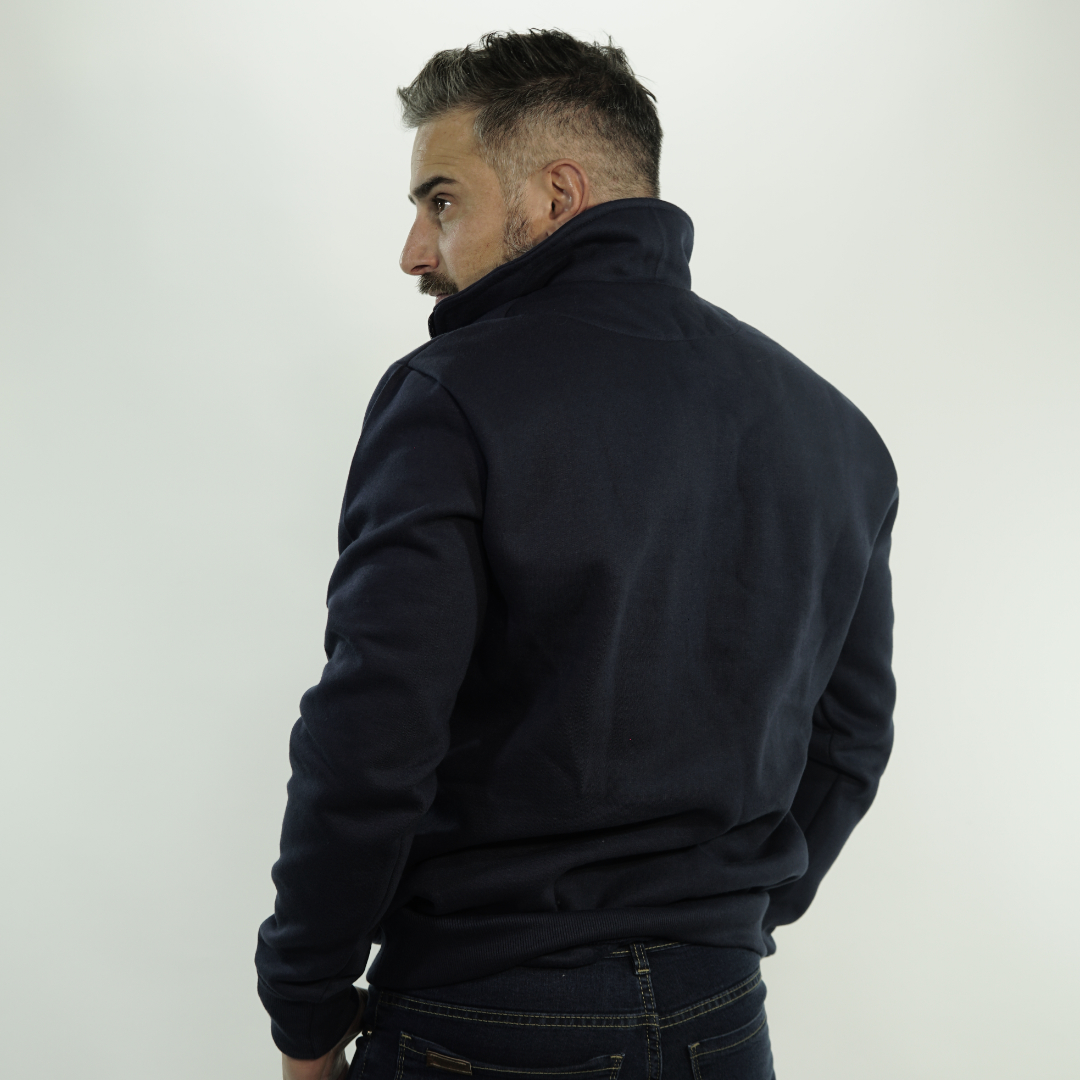 BUZO DE FRISA PEINADA CON CUELLO MEDIA POLERA Y CIERRE COMÚN. PUÑOS Y CINTURA EN MORLEY, IDEAL PARA EL USO DIARIO. SUAVE, ABRIGADO Y EN COLORES CLÁSICOS. TALLES DEL 3XS AL 5XL. MODELO USA TALLE M, MIDE 1,80 M Y PESA 75 KG APROX.