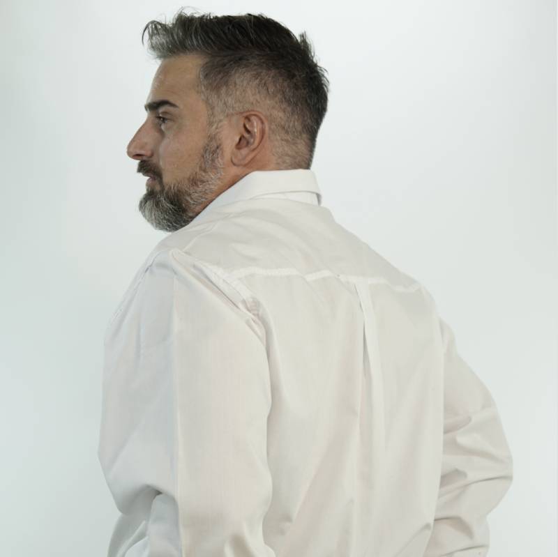 CAMISA MANGA LARGA OXFORD, CON BOLSILLO DELANTERO IZQUIERDO Y CUELLO INGLÉS CON BOTÓN. CANESÚ TRASERO CON TABLA EN LA ESPALDA. TALLES DEL S AL 4XL. EL MODELO USA TALLE M, MIDE 1,80 Y PESA 75KG APROX.