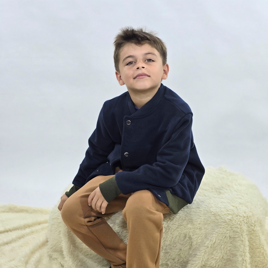CAMPERA TIPO BOMBER DE FRISA CON DETALLES EN CUELLO, PUÑOS Y CINTURA. CIERRE CON 4 BROCHES TIPO SUIZO, IDEAL PARA REALZAR CUALQUIER LOOK. DISPONIBLE EN COLORES CLÁSICOS Y TALLES DEL 4 AL 16. EL MODELO USA TALLE 10, MIDE 1,10 M Y PESA 28 KG APROX.