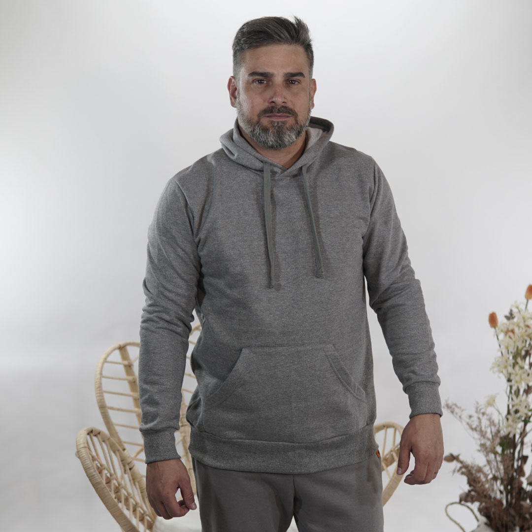 CANGURO DE FRISA PEINADA CON CAPUCHA FORRADA Y CORDÓN DE ALGODÓN. PUÑOS Y CINTURA CON MORLEY. SUAVE, ABRIGADO E IDEAL PARA EL USO DIARIO. DISPONIBLE EN COLORES CLÁSICOS. EL MODELO USA TALLE M, MIDE 1,75?M Y PESA 73?KG APROX.