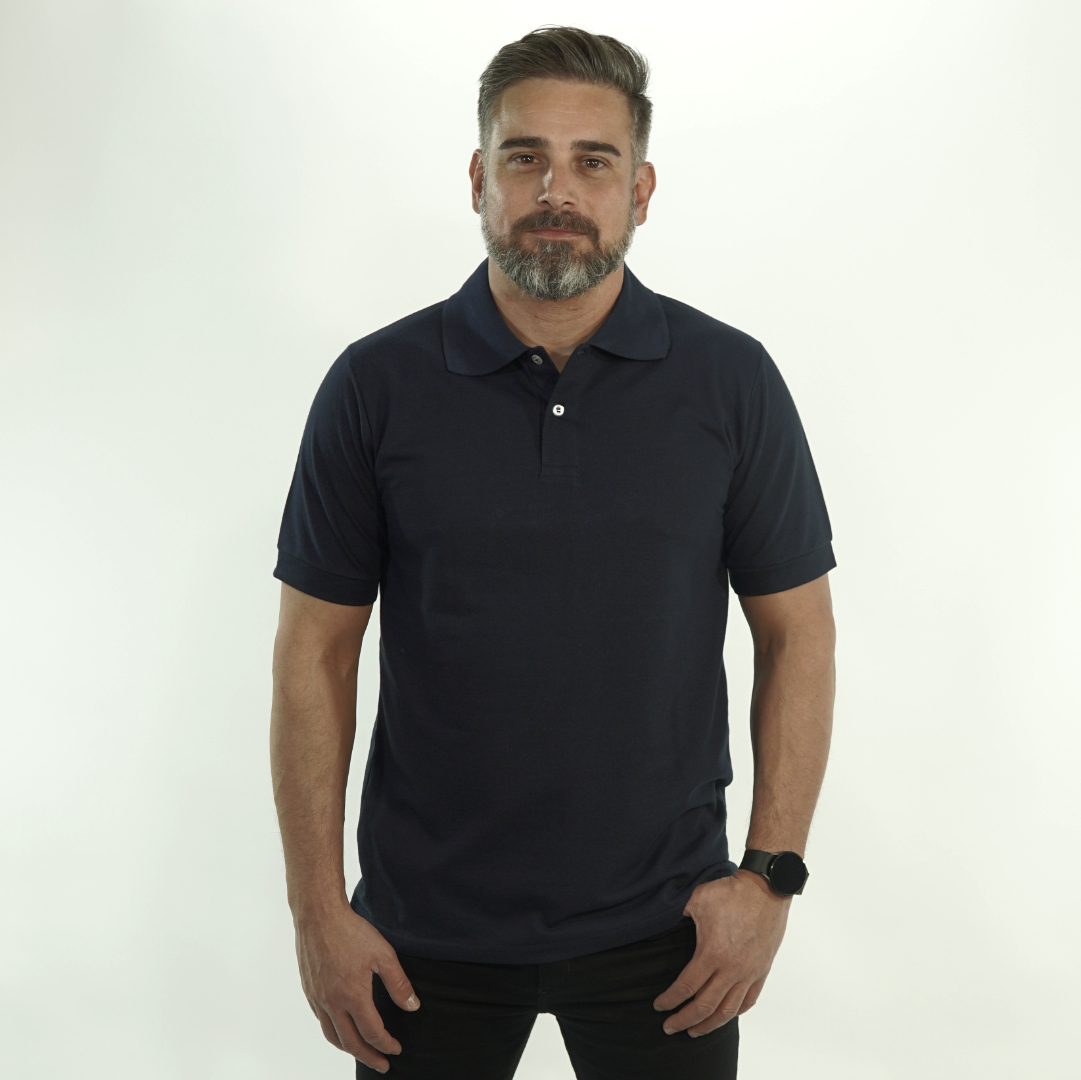 CHOMBA DE MICROPIQUÉ 100% ALGODÓN, MANGA CORTA Y CALCE CÓMODO. CUELLO TEJIDO, PUÑOS AL TONO Y CARTERA DE DOS BOTONES. IDEAL PARA UN LOOK CASUAL Y PROLIJO. TALLES DEL 3XS AL 5XL. EL MODELO USA TALLE M, MIDE 1,80 M Y PESA 75 KG APROX.