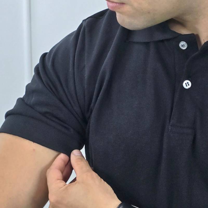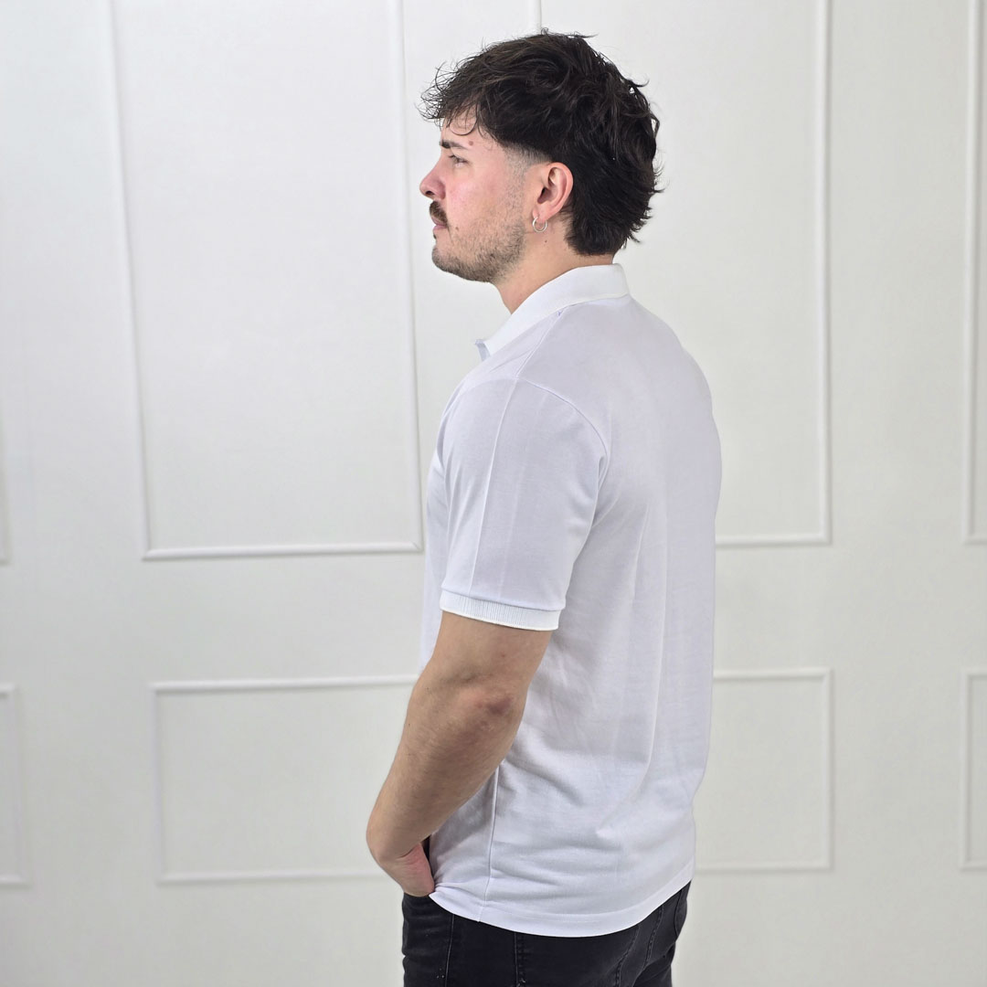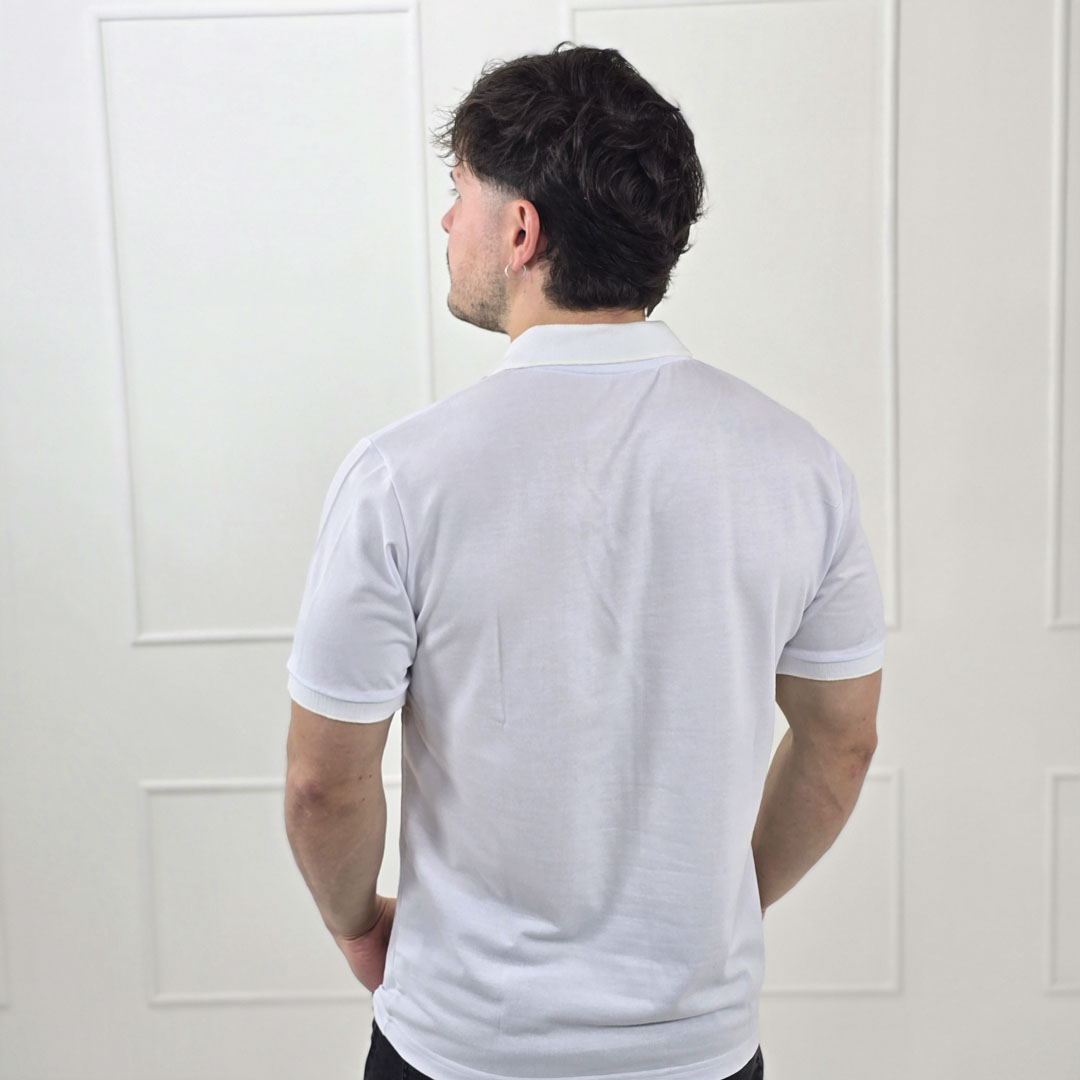 CHOMBA MANGA CORTA PAOLO DE MICROPIQUÉ COLOR BLANCO. CALCE REGULAR, TEJIDO SUAVE Y FRESCO. CUELLO Y CARTERA CON BOTONES, COSTURAS REFORZADAS. IDEAL PARA TRABAJO O USO DIARIO. TALLES DEL 3XS AL 5XL. EL MODELO USA TALLE M, MIDE 1,75 Y PESA 75KG.