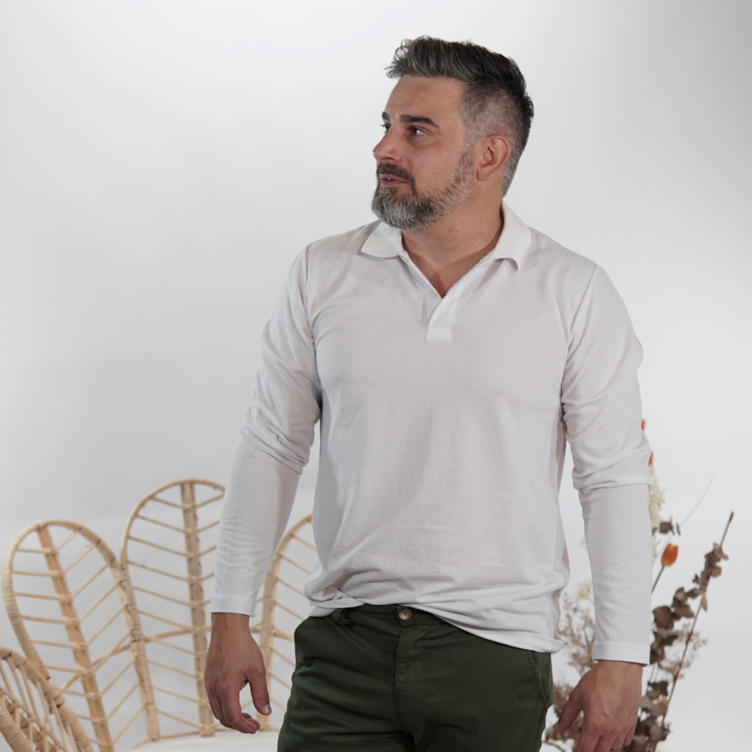 CHOMBA DE MICROPIQUÉ 100% ALGODÓN, MANGA LARGA Y CALCE CÓMODO. CUELLO TEJIDO, PUÑOS AL TONO Y CARTERA CON 2 BOTONES. IDEAL PARA UN LOOK CASUAL Y PROLIJO. DISPONIBLE DEL TALLE S AL 4XL. EL MODELO USA TALLE M, MIDE 1,75?M Y PESA 73?KG APROX.