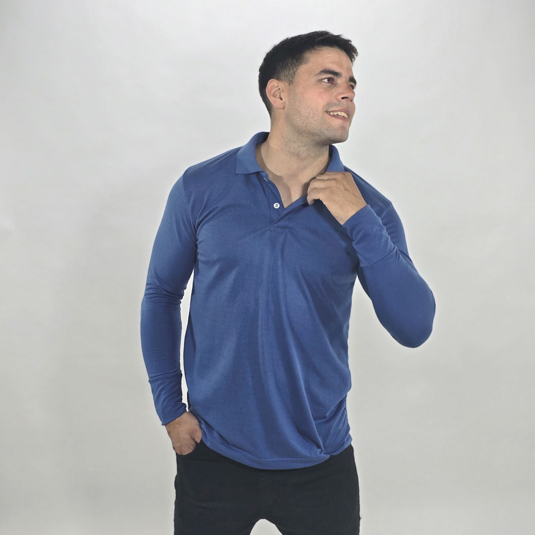CHOMBA DE MICROPIQUÉ 100% ALGODÓN, MANGA LARGA Y CALCE CÓMODO. CUELLO TEJIDO, PUÑOS AL TONO Y CARTERA CON 2 BOTONES. IDEAL PARA UN LOOK CASUAL Y PROLIJO. DISPONIBLE DEL TALLE S AL 4XL. EL MODELO USA TALLE M, MIDE 1,75 M Y PESA 73 KG APROX.