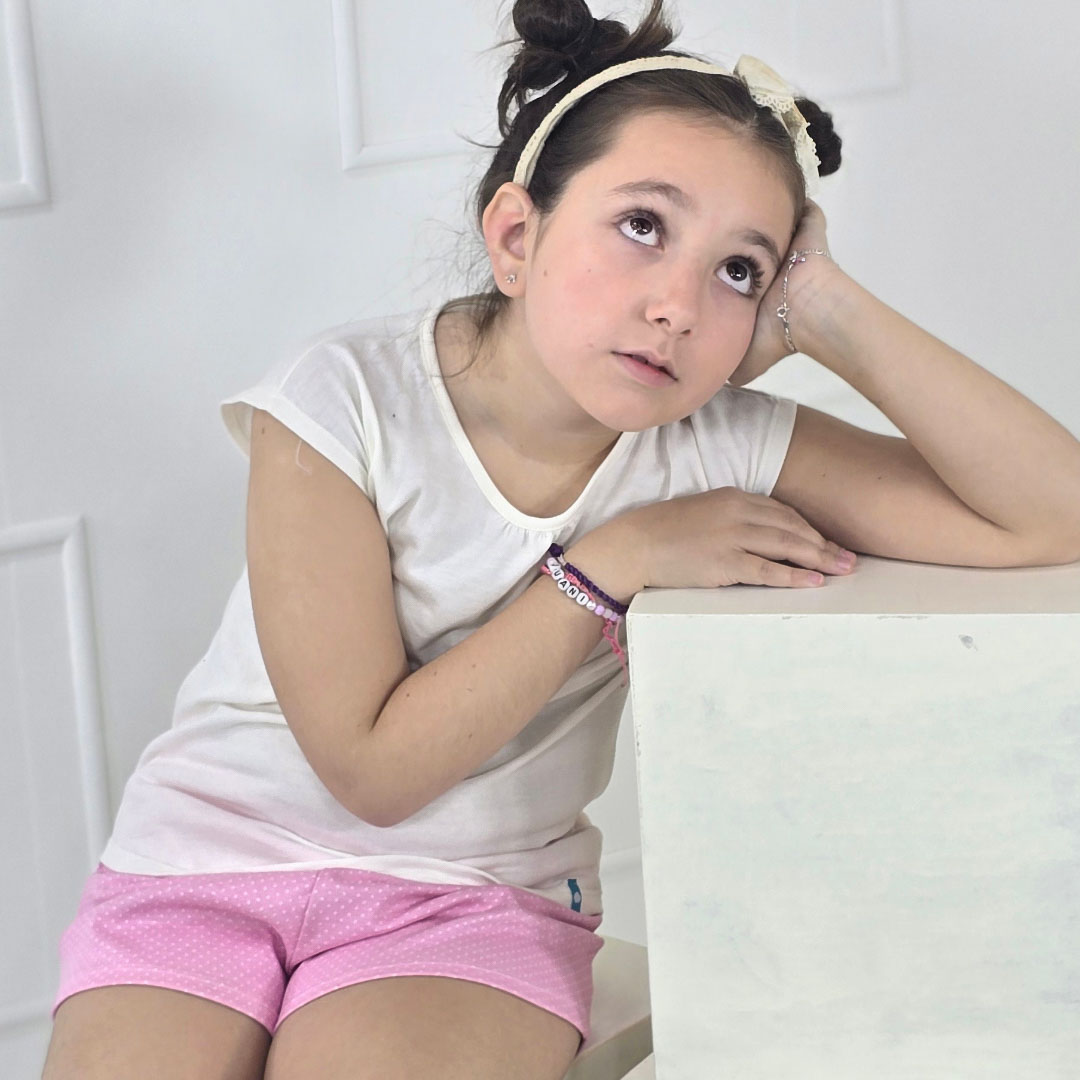 PIJAMA DE 2 PIEZAS: SHORT ESTAMPADO CON CINTURA ELÁSTICA Y REMERA LISA. CONFECCIONADO EN JERSEY DE ALGODÓN, IDEAL PARA DESCANSAR CON COMODIDAD. TALLES DEL 4 AL 16. LA MODELO MIDE 1,10?M Y USA TALLE 10.