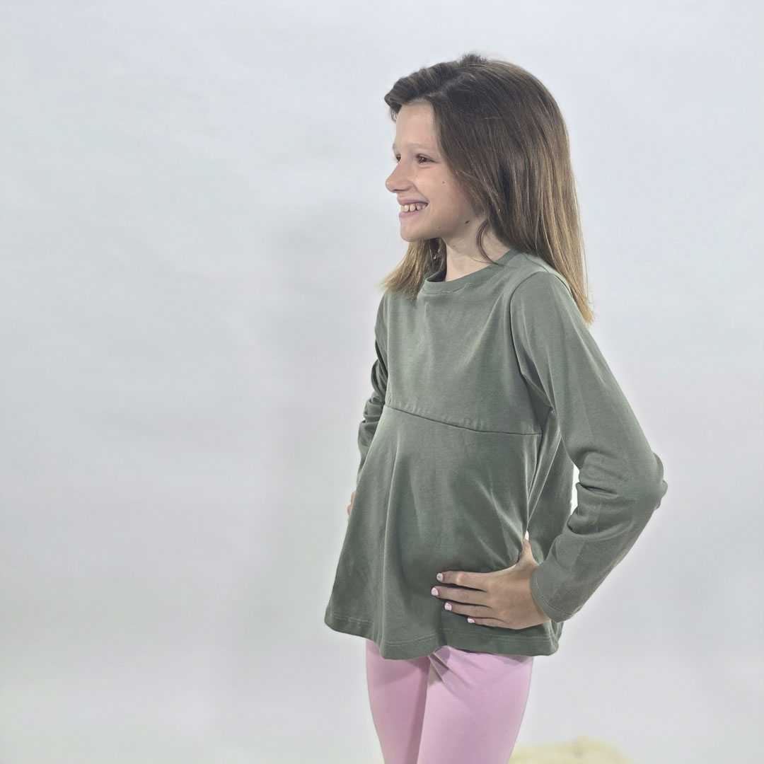 REMERA MANGA LARGA CON FALDÓN DELANTERO, CONFECCIONADA EN 100% ALGODÓN. CÓMODA E IDEAL PARA TODOS LOS DÍAS. DISPONIBLE EN COLORES CÁLIDOS. LA MODELO MIDE 1,10 M Y PESA 26 KG APROX.