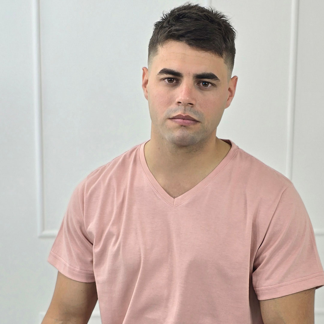 REMERA MANGA CORTA CON ESCOTE EN V, CUELLO APLICADO DE RIBB Y TIRA AMERICANA. CORTE HOLGADO Y CONFORTABLE, IDEAL PARA TODOS LOS DÍAS. DISPONIBLE EN VARIOS COLORES. TALLES DEL S AL 4XL. EL MODELO MIDE 1,75?M Y USA TALLE M.