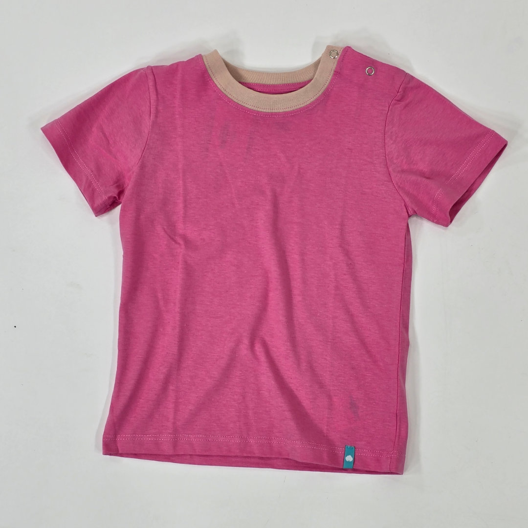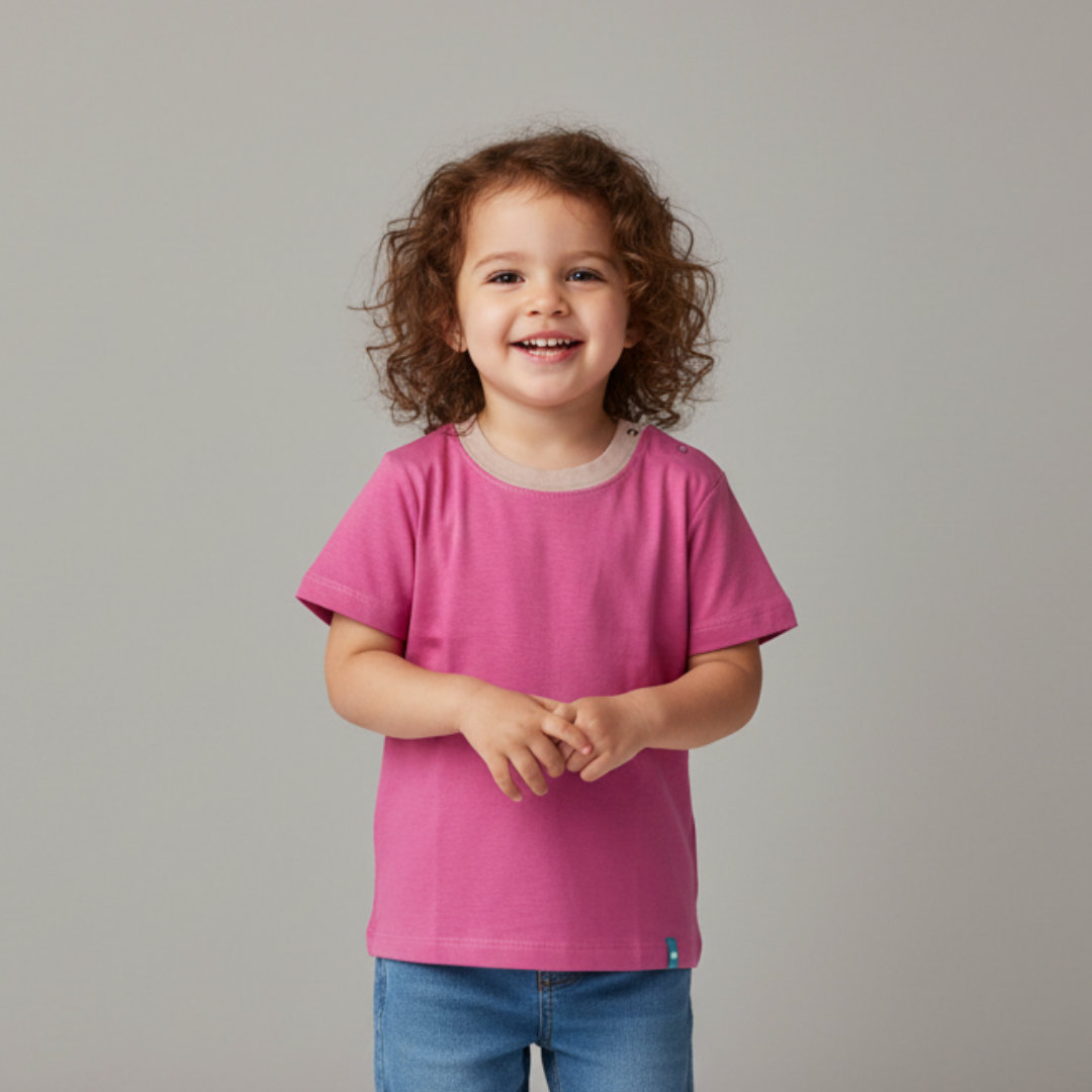 REMERA 100% ALGODÓN COLOR ROSA INTENSO. CALCE CÓMODO, TEXTURA SUAVE Y LIVIANA. IDEAL PARA USO DIARIO. TALLES DEL 1 AL 4. LA MODELO USA TALLE 4, Y TIENE 4 AÑOS
