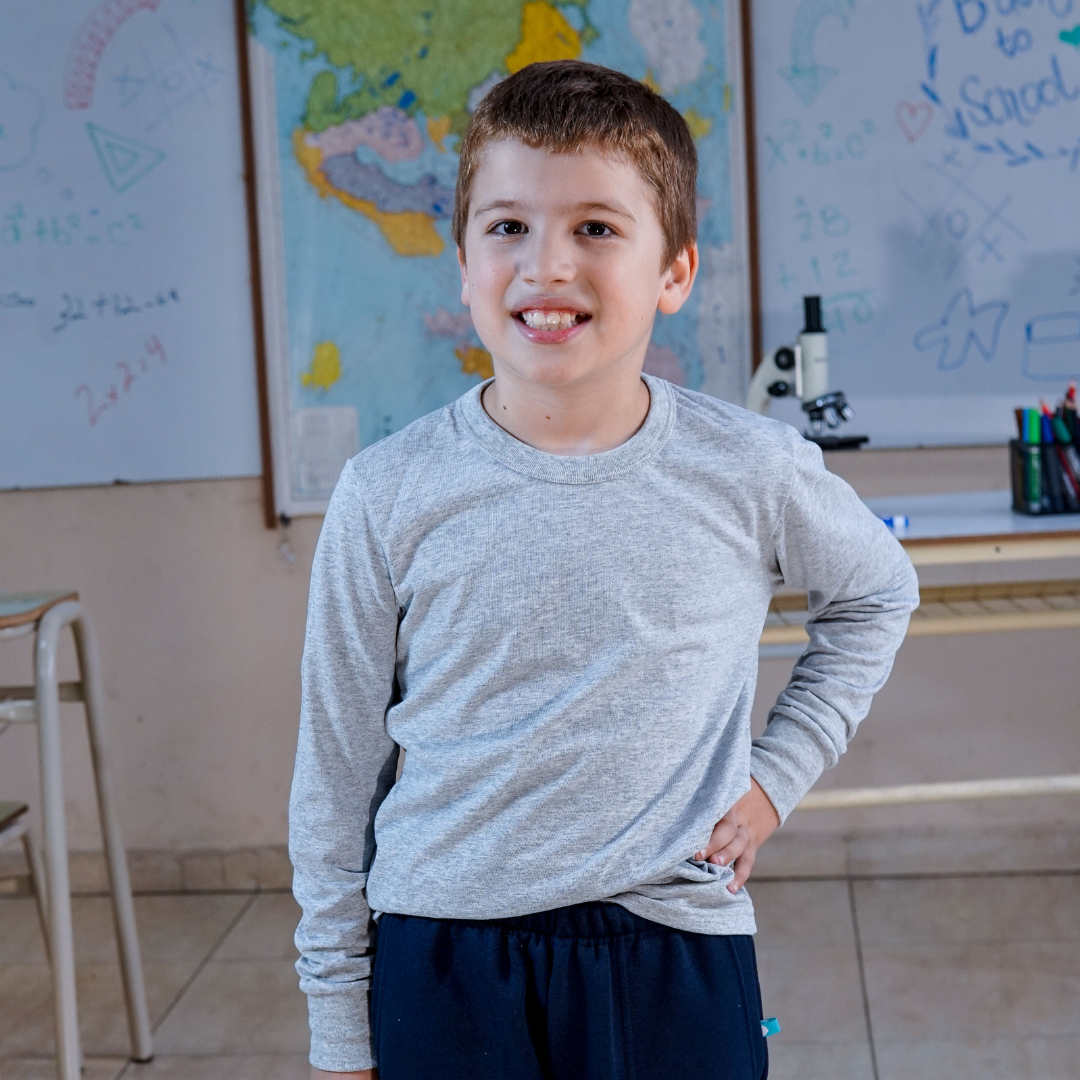 REMERA BÁSICA DE MANGA LARGA 100% ALGODÓN, ESCOTE REDONDO CON CUELLO DE RIBB. CALCE HOLGADO, SUAVE Y LIVIANA, IDEAL PARA EL DÍA A DÍA. TALLES DEL 2 AL 16. EL MODELO USA TALLE 8, MIDE 1,35 M Y PESA 28 KG APROX.