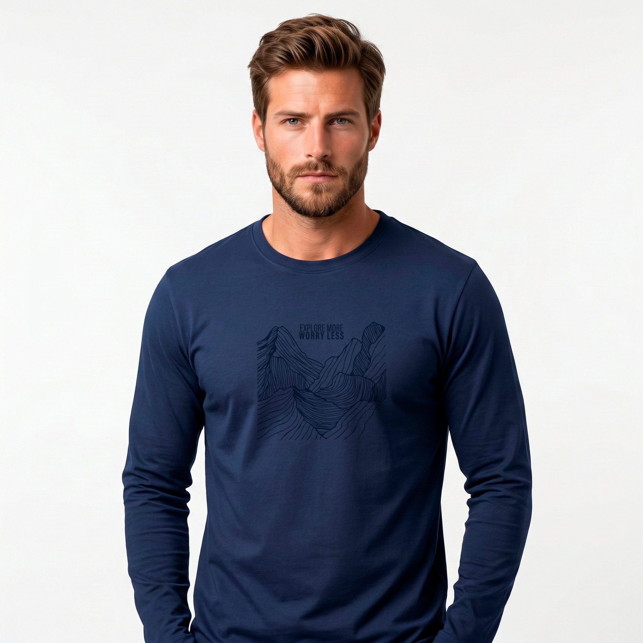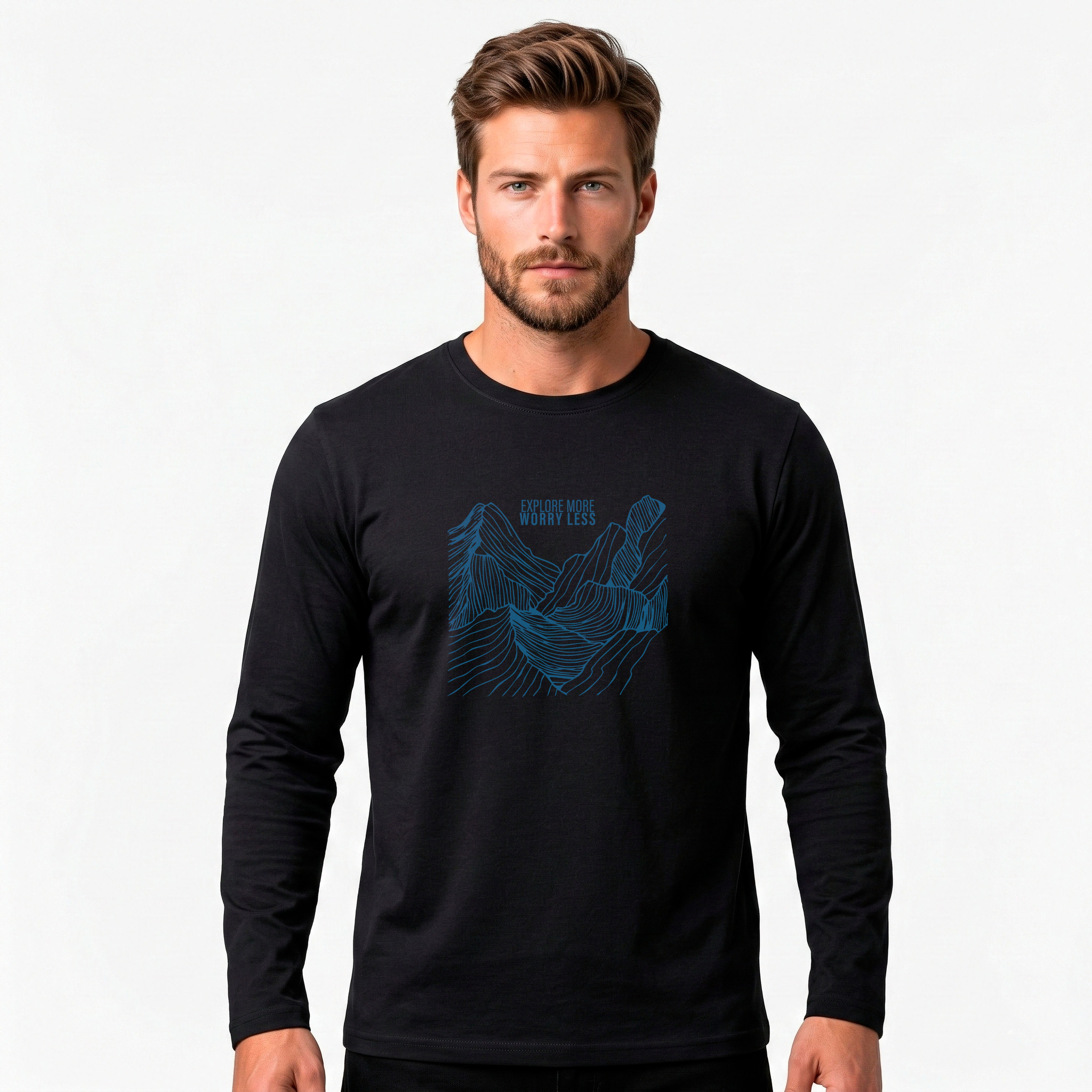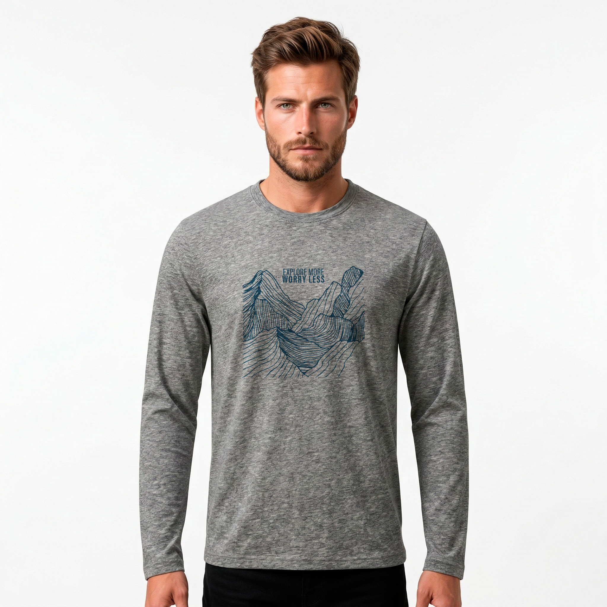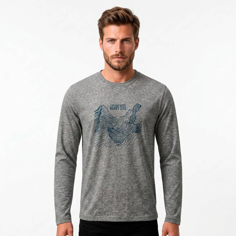 REMERA MANGA LARGA DE JERSEY CON CUELLO REDONDO. TALLES DEL S AL 4XL. DISPONIBLE EN VARIOS COLORES GRIS MELANGE, BLANCO, NEGRO Y AZUL MARINO. EL MODELO MIDE 1,75?M Y USA TALLE M.