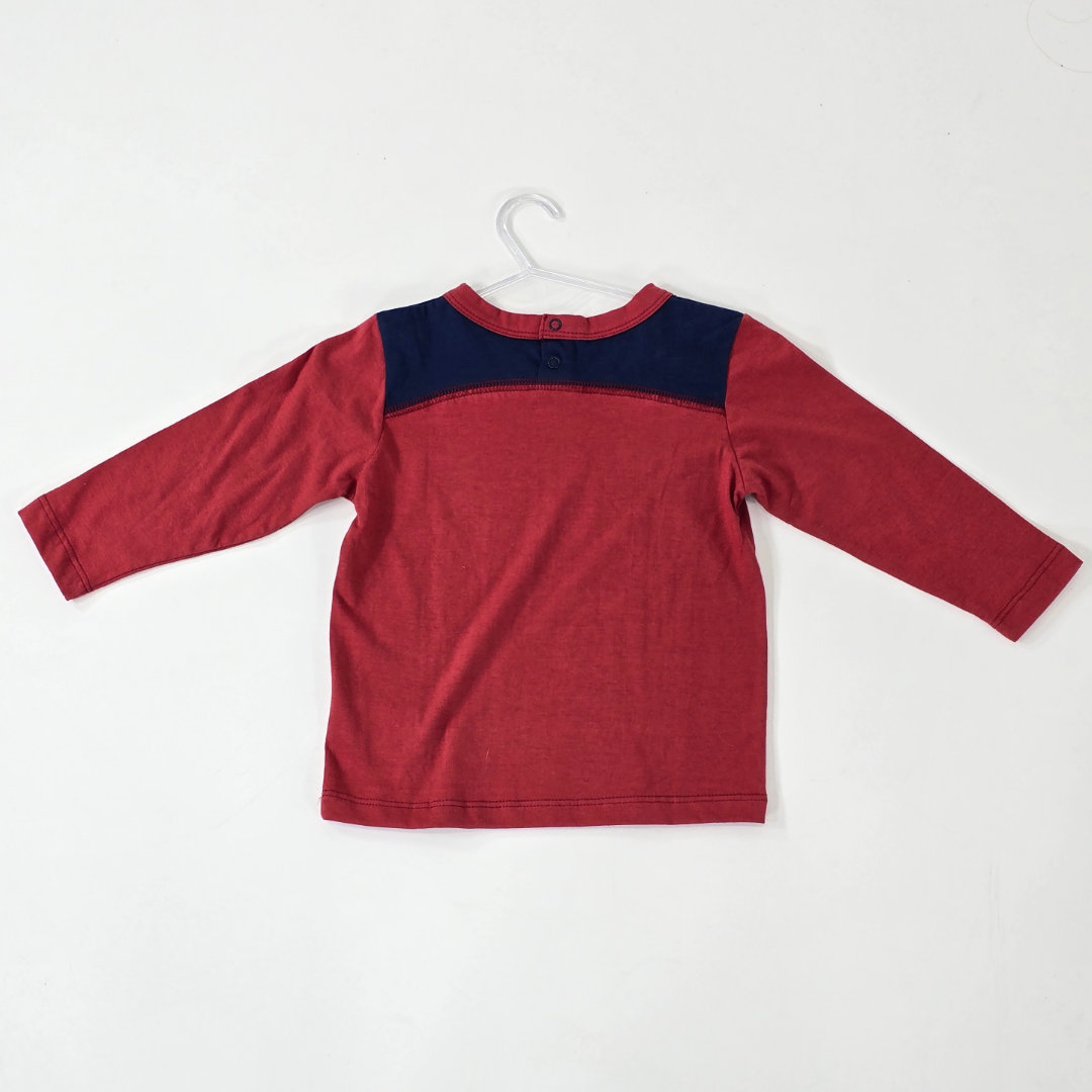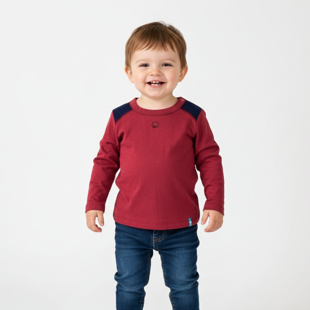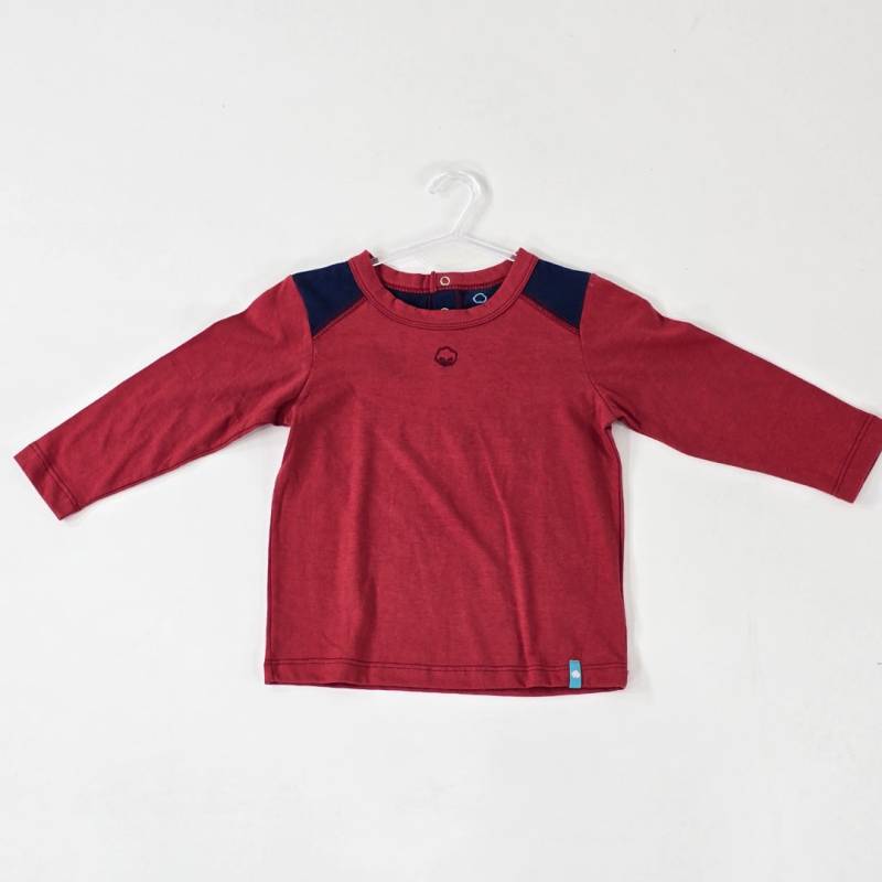 REMERA MANGA LARGA COMBINADA TEO 100% ALGODÓN COLOR LADRILLO COMBINADA. CALCE CÓMODO, TEXTURA SUAVE Y LIVIANA. IDEAL PARA USO DIARIO. TALLES DEL 1 AL 4. MODELO USA TALLE 1 Y TIENE 1 AÑO.