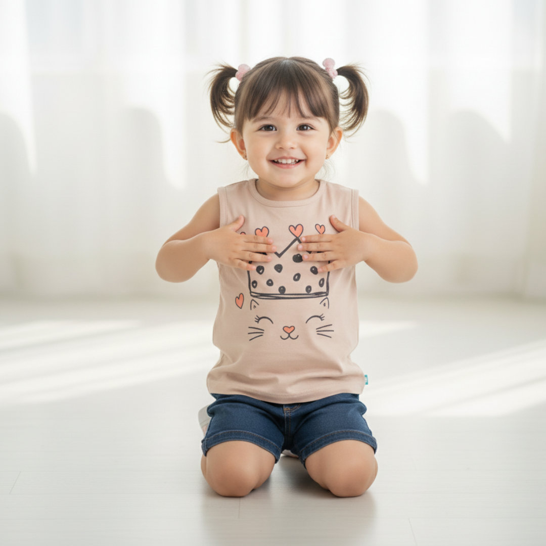 REMERA SIN MANGAS 100% ALGODÓN COLOR BLANCO. CALCE CÓMODO, TEXTURA SUAVE Y LIVIANA. IDEAL PARA USO DIARIO Y ESCOLAR. TALLES DEL 1 AL 4. LA MODELO USA TALLE 4, Y TIENE 4 AÑOS.