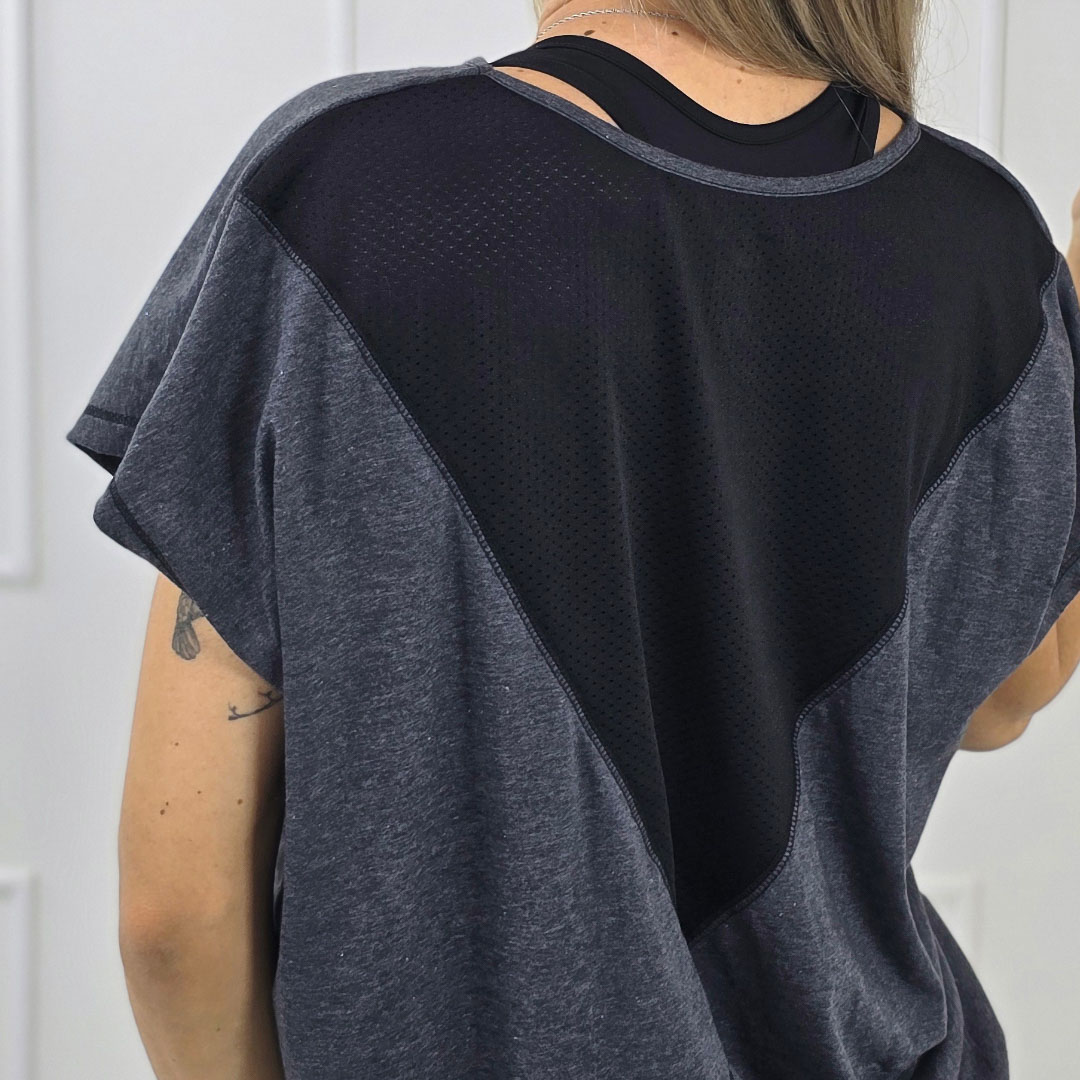 REMERÓN CON RECORTE DE DRYFIT COMBINADO EN LA ESPALDA. DE CORTE AMPLIO, SUELTO Y FRESCO, BRINDA COMODIDAD Y ESTILO PARA TODOS LOS DÍAS. TALLES DEL S AL 3XL. LA MODELO MIDE 1,65?M Y USA TALLE M.