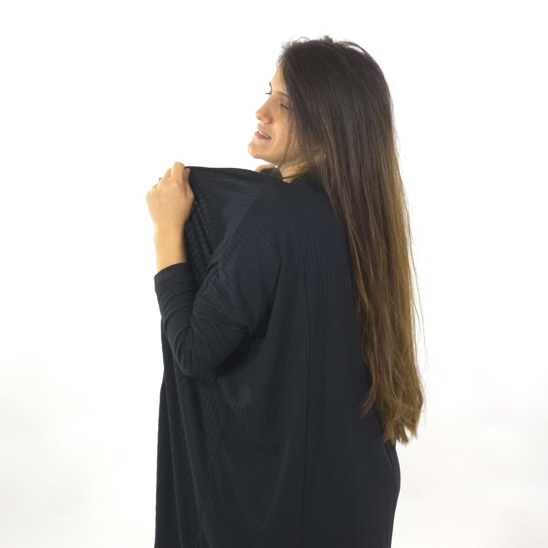 SACO LARGO DE MORLEY VISCOSA, CÓMODO Y DE CALCE HOLGADO. IDEAL PARA TODOS LOS DÍAS, EN COLORES NEUTROS QUE COMBINAN FÁCILMENTE. TALLES DEL S AL 3XL. LA MODELO USA TALLE M, MIDE 1,70?M Y PESA 62?KG APROX