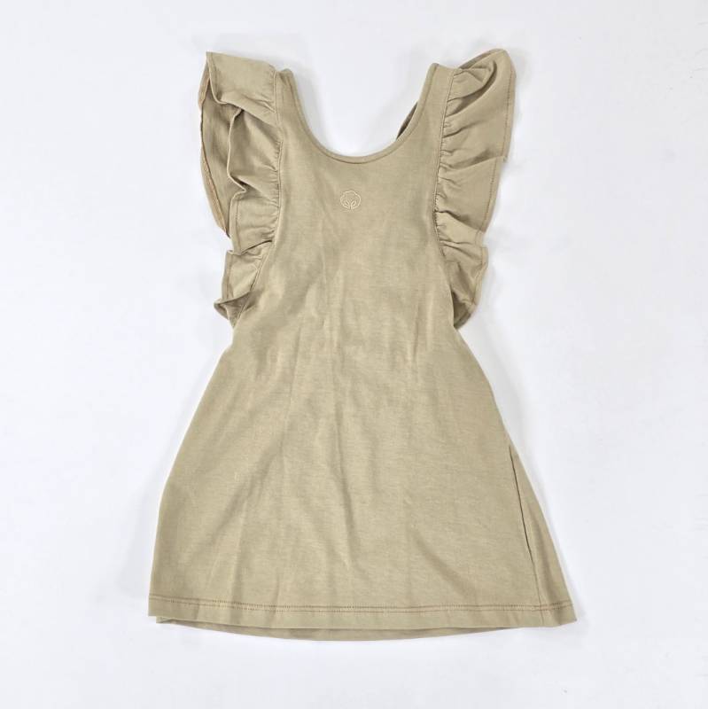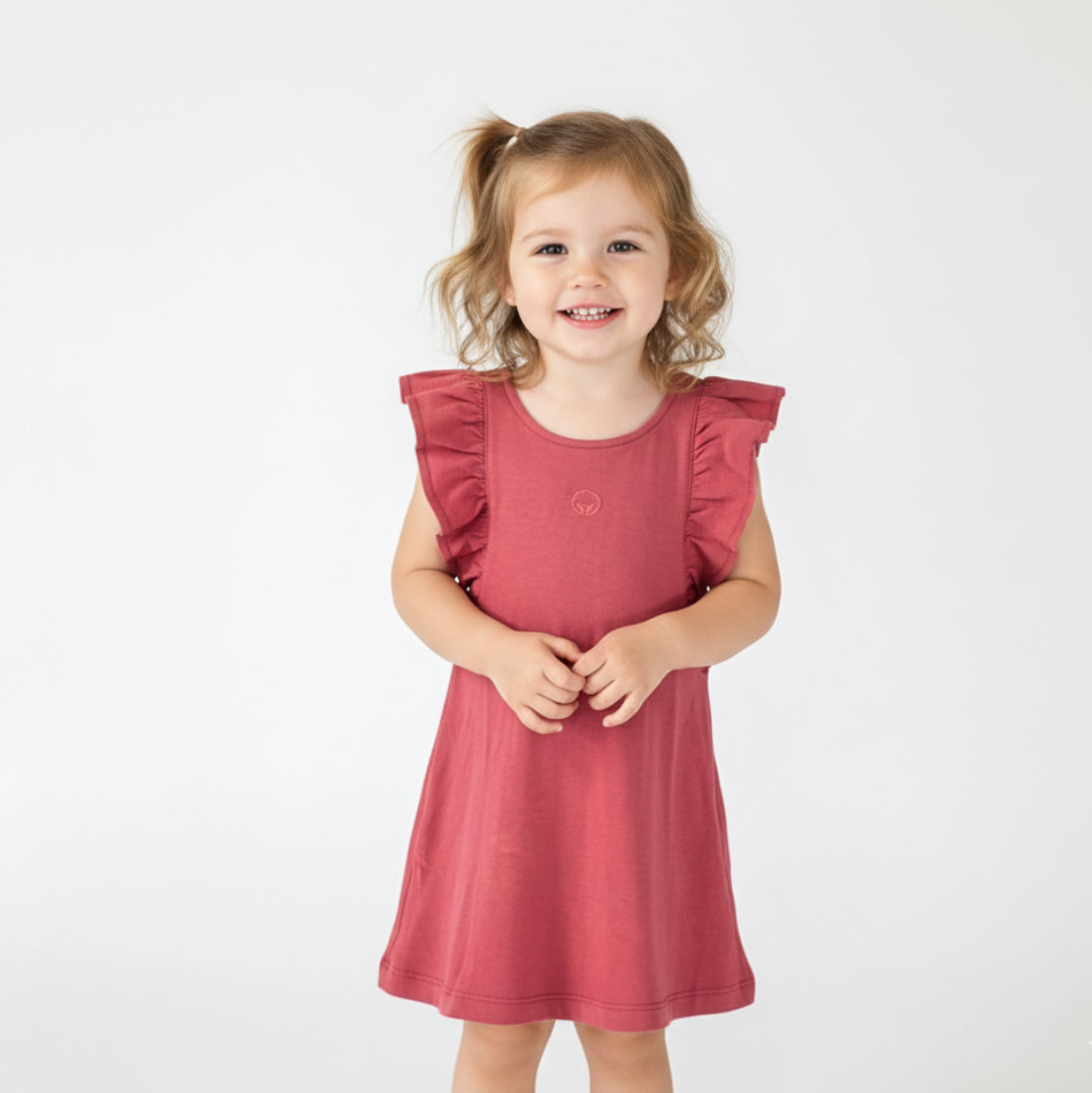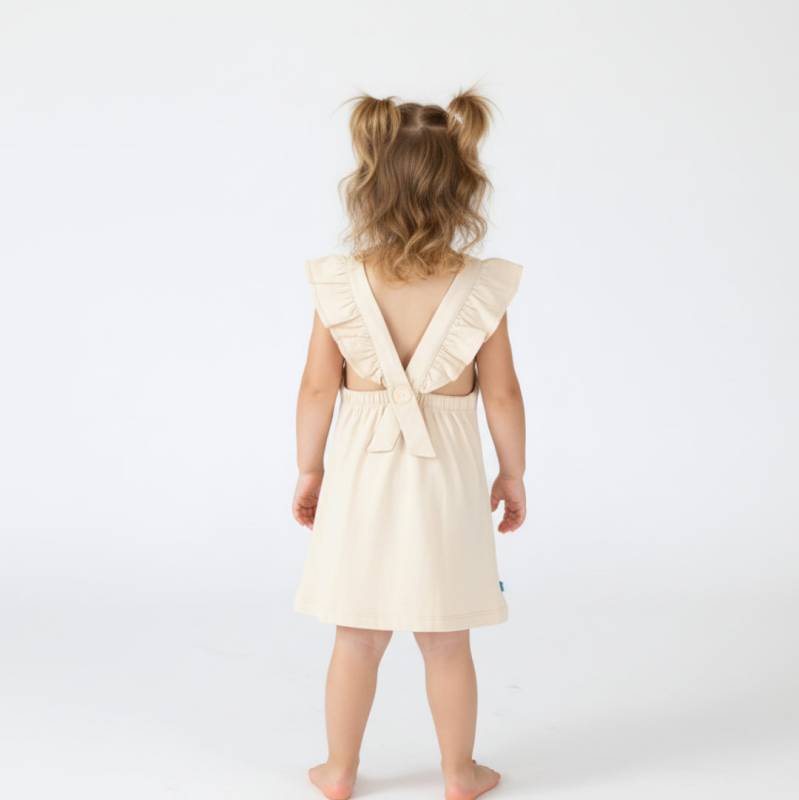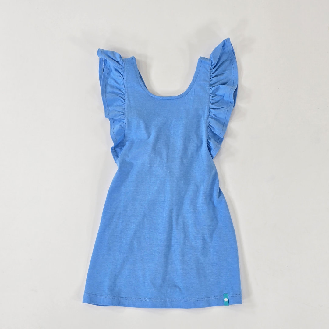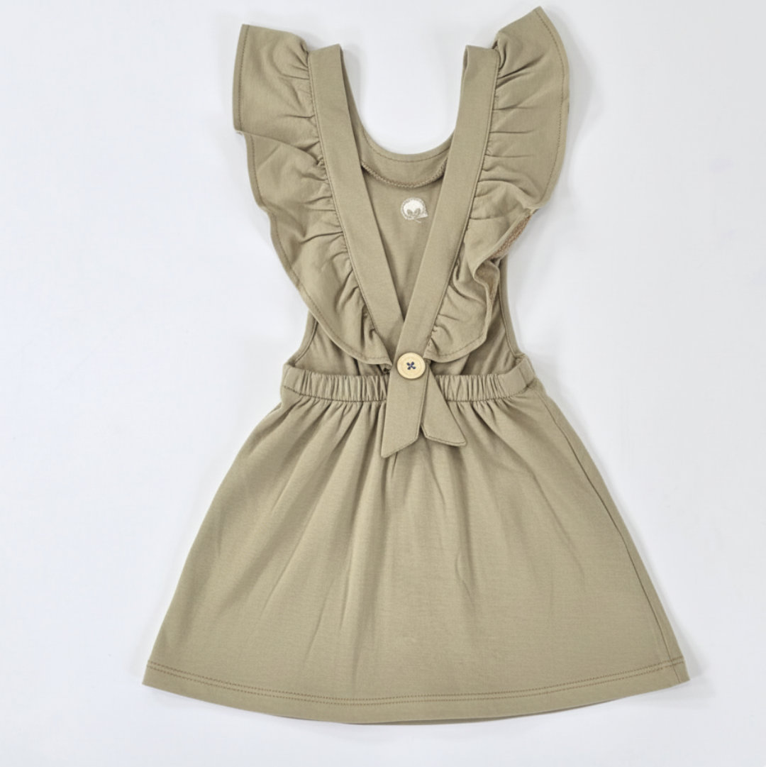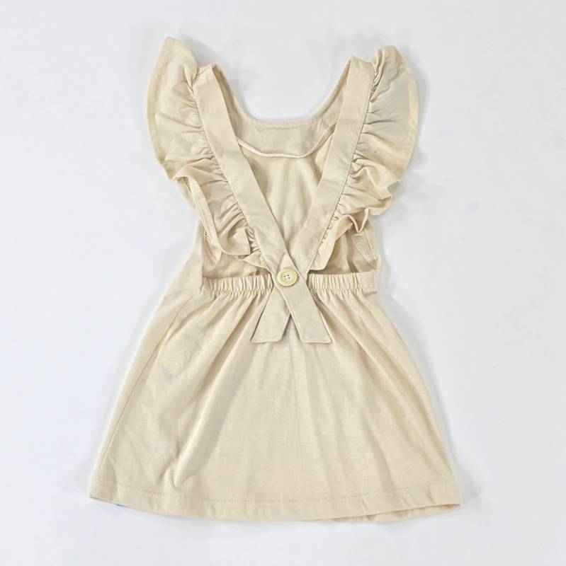 VESTIDO SIN MANGAS CON ESPALDA CRUZADA, VUELOS Y BOTÓN COMO DETALLE. ELÁSTICO EN LA PARTE TRASERA PARA MAYOR COMODIDAD. COLORES: BORDÓ MELANGE Y VERDE MENTA MELANGE. TALLES DEL 1 AL 4. LA MODELO TIENE 2 AÑOS Y USA TALLE 3